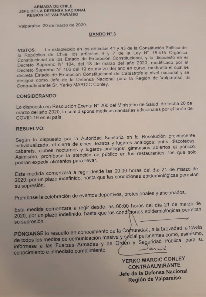 Entre ellas, enfatizó en la orden de cierre de cines, teatros, restoranes, pubs, discotecas y eventos deportivos independientes que reúnan público.